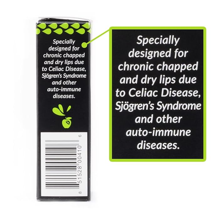 - Lip Balm designed to relieve and control chronic chapped lips caused by auto-immune conditions such as Celiac Disease, Sjögren’s Syndrome, and Hashimoto’s Disease.