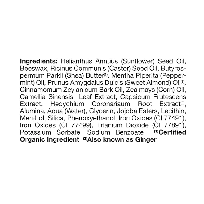 - Sunflower seed oil, shea butter and sweet almond oil keep lips hydrated and supple
