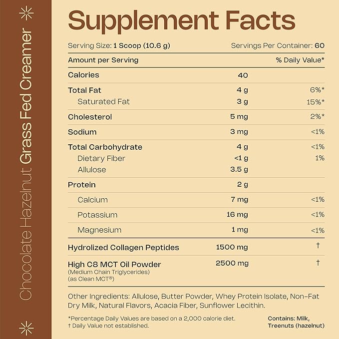 LevelUp Creamer, with Energizing MCT Oil and Collagen Peptides, Keto Coffee Creamer, Supports Natural Energy & Ketone Production - Chocolate Hazelnut, 22 oz