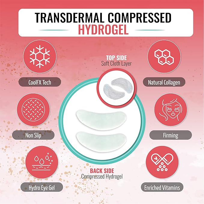 - Non-Slip: At last, an under eye mask NOT drowning in serum. Beneath the form fit fabric is a compressed hydro eye gel layered with nutrients and CoolFX – A refreshing cooling sensation. While other under eye pads slip off, Look At Me under eye masks for dark circles and puffiness stay firm so you can complete an eye bags treatment while completing your to do list.