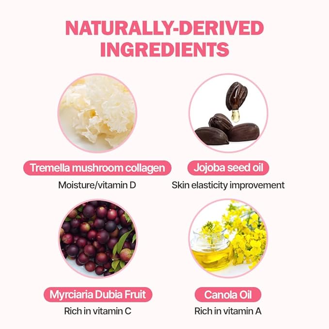 - SMOOTH AND FLEXIBLE CARE for roughed and tightened skin before and after pregnancy. Tremella Fuciformis Mushroom Collagen supplies moisture and Vitamin D. Jojoba oil strengthens skin flexibility, Myrciaria Dubia Fruit rich in Vitamin C and Canola Oil rich in Vitamins A & C