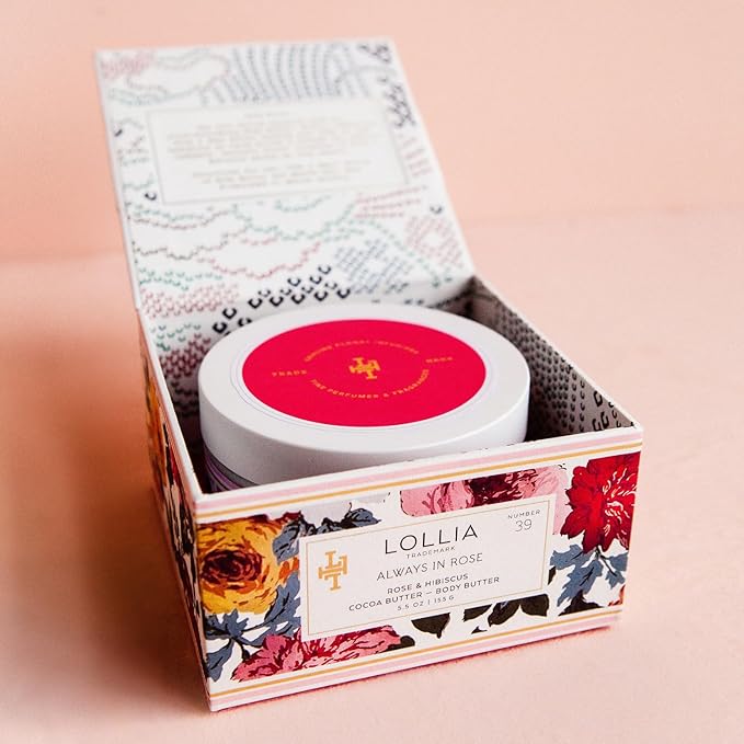 - ENCHANTING BODY MOISTURIZER: Lollia Always In Rose Body Butter is ultra-nourishing and richly comforting. Delicate floral infusions of blushing Rose, Hibiscus, and warm Amber leave skin delightfully scented.