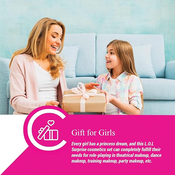 - Makeup Toy Gift for Girls: Every girl has a princess dream, this L.O.L Surprise cosmetic set can fully meet their role-playing needs in theatrical makeup, dance makeup, training makeup, party makeup and etc., and can be widely used in any occasion, Summer Vacations, Party favors, Stocking stuffers, Sleepovers, Makeovers, birthday makeup kit gifts, various festivals, School Rewards, Back to School and more! Can be used by children over the age of 5.