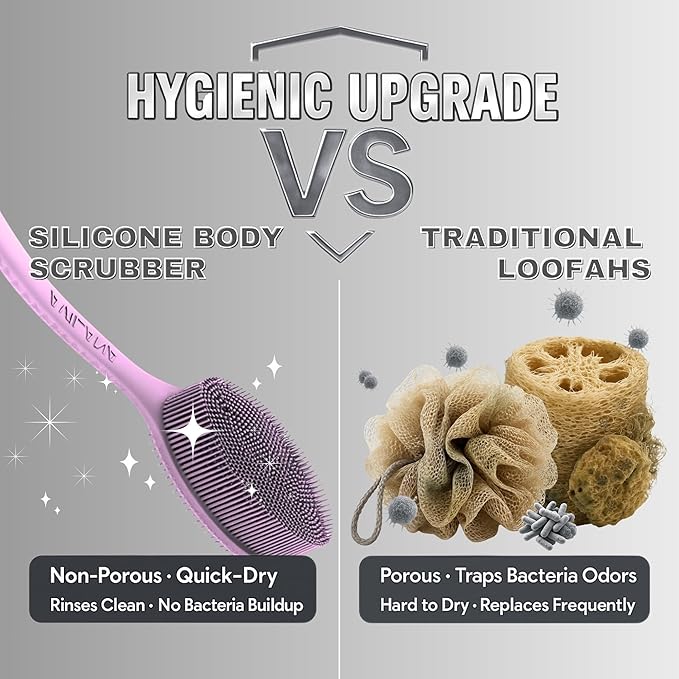 - Superior Hygiene & Quick-Dry - Non-porous silicone prevents bacterial growth, soap buildup, and odors. Built-in hanging loop promotes rapid air-drying for lasting freshness.