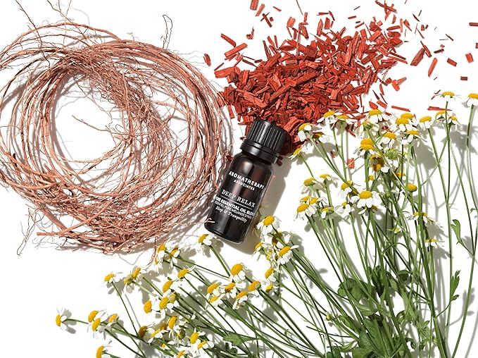 - Feel Relaxed, Peaceful, Tranquil and Balanced. The Deep Relax blend is a vital part of the bedtime ritual. It combines deeply grounding vetivert, soothing chamomile and comforting sandalwood.