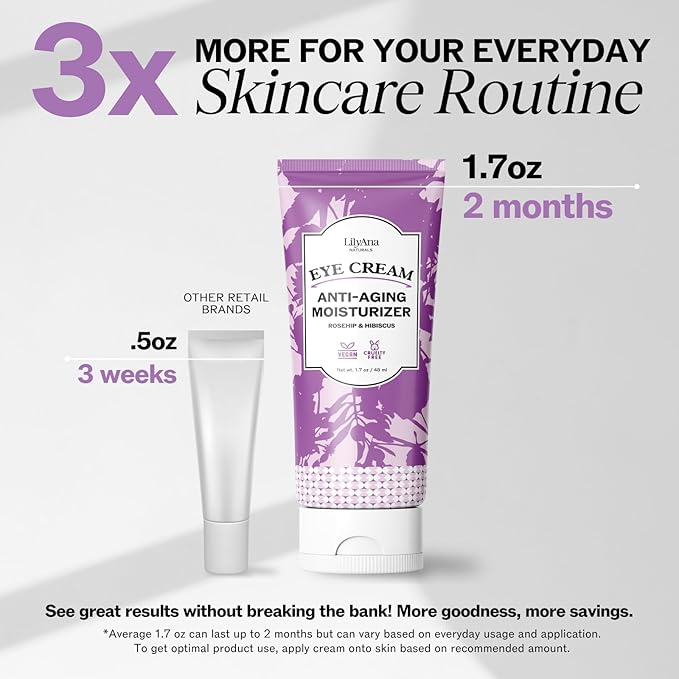 LilyAna Naturals Eye Cream for Dark Circles and Puffiness, Under Eye Cream for Wrinkles and Bags, Anti Aging Cream helps Improve Dryness; for Sensitive Skin 0.5 oz