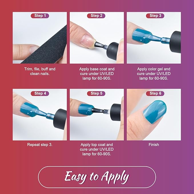 - Premium Formula & Long-Lasting: Our gel nail polish uses high-quality, environmentally friendly resin and has a low odor. Curing under LED/U V light is required. With proper application, this gel polish kit can keep your nails gel glossy and shiny more than 3 weeks! Easy to use in nail salons, make-up studios or home. JODSONE gel nail polish set is also a great idea gift for Christmas, Valentine's Day, Birthday, Mother’s Day etc.