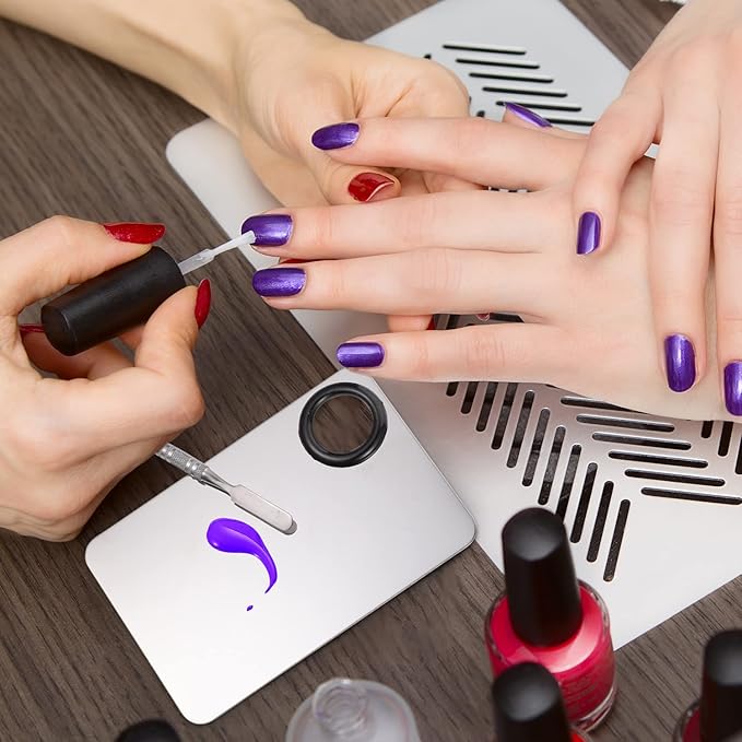 - 【Wide Application】Stainless steel makeup mixing tray is suitable for mixing liquid foundation, lipstick, eye shadow and other cosmetics, as well as nail gel, art pigment toning. This makeup palette is perfect for professional makeup artists and non-professional makeup lovers alike, making it the perfect gift for them.