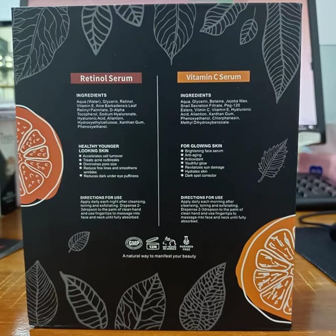 Kumi Beauty. K-Beauty Serums ~ 3 in 1 Gift Box ~ ||| Set: 2 Face Serums (Vitamin C + Retinol) + 1 Rose Quartz Roller.
