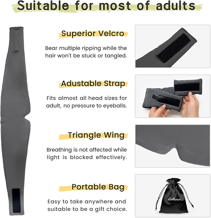 - Block Out Light Perfectly: With the large size design, and the particular triangle wing, the blindfold perfectly blocks out all light, so you will enjoy a good dream all night. The travel eye mask is light weighted thus you can take it anywhere, wear it anytime to obtain a sound sleep whenever you want