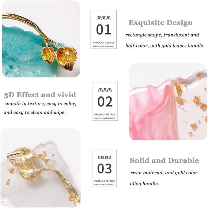 - Exquisite Design: Perfect resin manicure palette that mixes nail color, which helps maintain pigment. Rectangle shape, translucent and half-color, gold leaves handle design, beautiful color and comfortable texture, superior and exquisite.