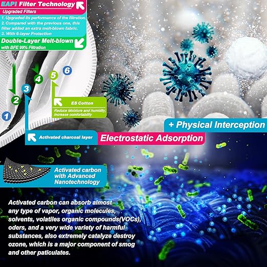 - 【99.6% FILTRATION WOODWORKING DUST MASK】Adopted EAPI filter technology and Advanced Nanotechnology, BASE CAMP respirator face mask works with 6-layer filters to block 99.6% dust, pollen, odors, pollutants, and other airborne particles (Note: The filter already attached is just an example; please replace it with a new filter when using your anti pollen mask).