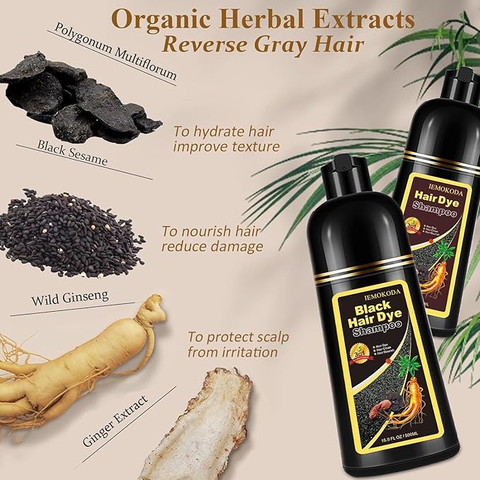 - 【Cleanse And Condition While You Color】Our magic 3-in-1 hair color shampoo colors, cleanses, and conditions your tresses all at once! Make your hair soft, shiny and manageable after dyeing. Infused with herbal ingredients like Polygonum Multiflorum to anti-gray hair; Ginseng to nourish hair follicles. (Perfect gifts for parents and elders)