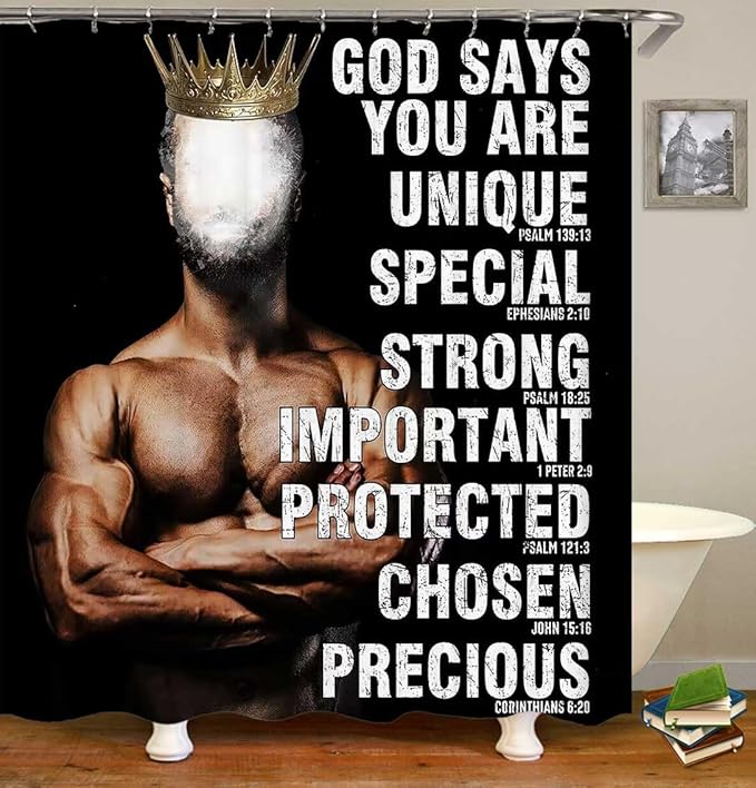 4PCS African American Shower Curtain Set, Black Shower Curtain, Black King Afro Black Man Bathroom Decor, Non-Slip Bath Mat, Positive Motivational Inspirational Gifts for Men, Man Cave Decor