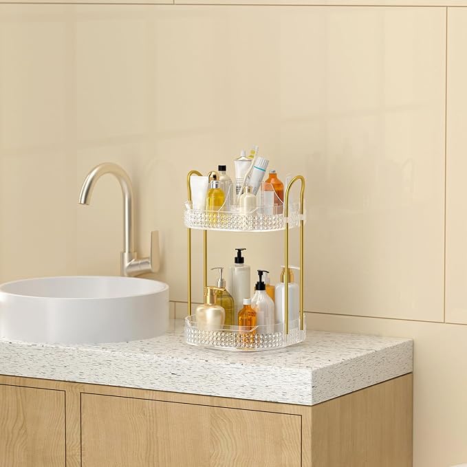 - 2 Tier Lazy Susan Organizer: Skincare organizer and storage comes with brush holder and compartments at the top, the lower layer is designed with a height of 8.27 inches, fearless of high bottles, to meet more storage needs. Let you change the storage space from square to cube, save countertop area