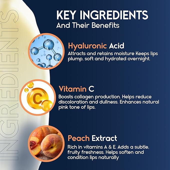 Lip Mask Overnight with Hyaluronic Acid & Collagen, Lip Sleeping Mask for Dry Cracked Lips, Moisturizing, Hydrating, Exfoliating Night Treatment for Lip Care (Peach)