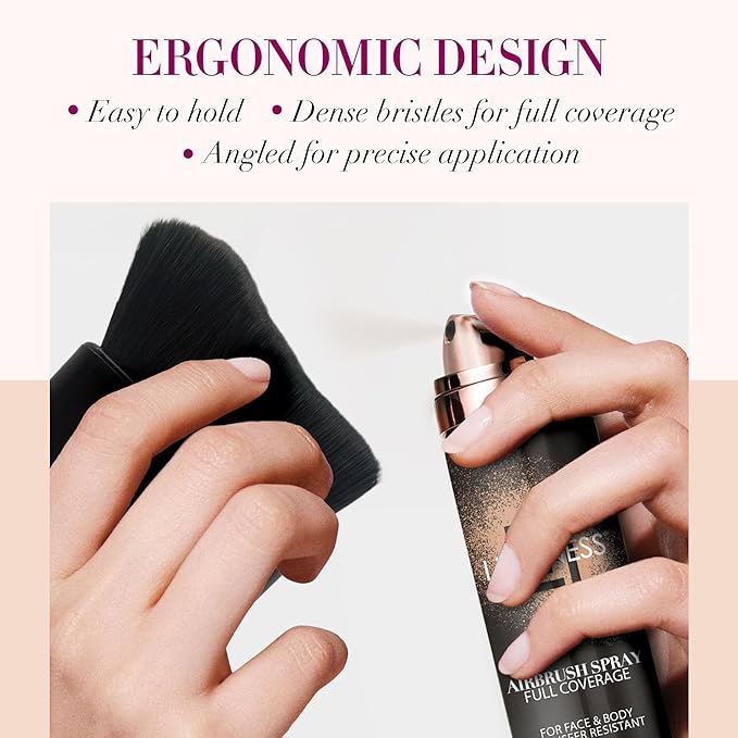- Professional-Grade Makeup Tool: The L500’s angled shape combined with densely packed bristles makes it ideal for seamlessly buffing and blending your LUMINESS Airbrush Spray Foundation anywhere you desire coverage.
