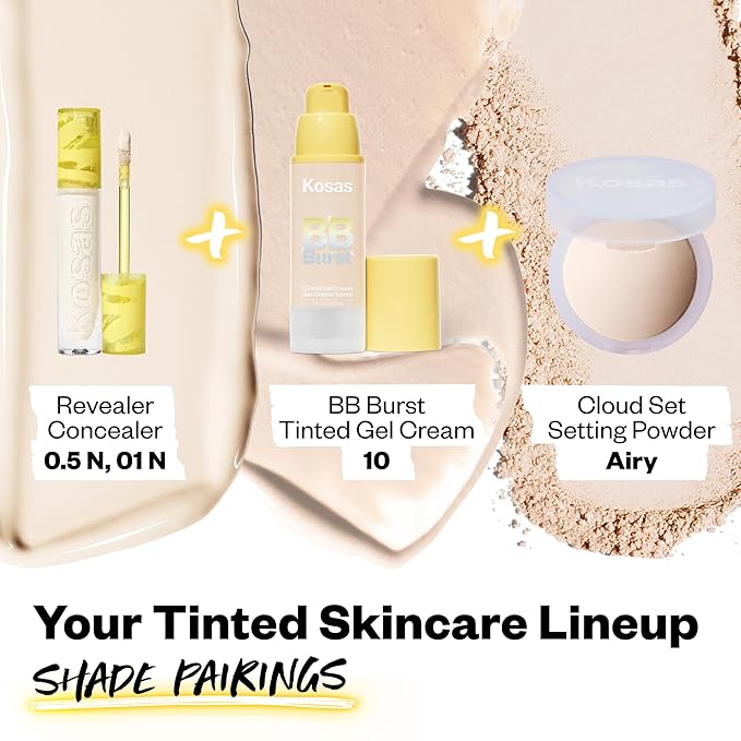 Kosas BB Burst Tinted Face Gel Cream - Supports Healthy Collagen, Smoothes Skin, Hydrates & Moisturizes - Lightweight Buildable Coverage - Very Light Neutral 10, Natural Finish (1 Oz/30 ML)
