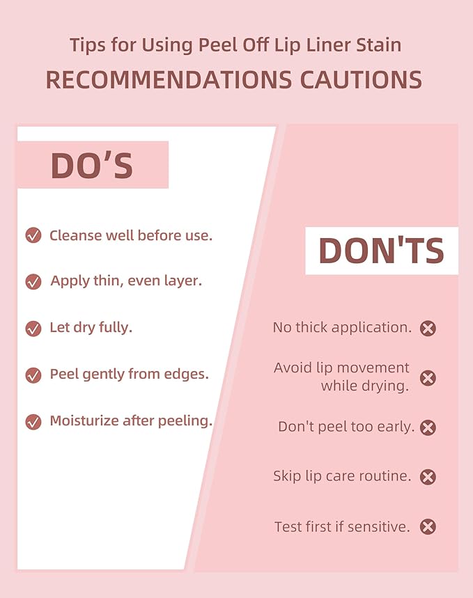- EASY TO USE - Simply outline and fill in your lips with the lip stains. Wait for it to dry, then use the tweezers to gently peel off for beautifully stained lips that last.(Warm Tip: For easier removal, apply two layers, avoiding the inner lip edges and contact with saliva. Wait 5 minutes for it to fully dry before peeling off.)