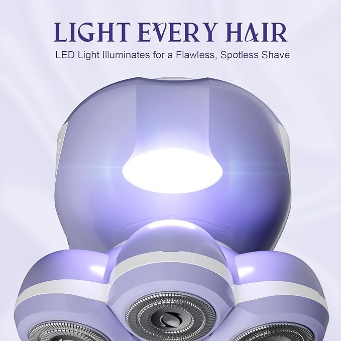 - 7D 360° Precision Floating Shaving Heads: Bartrimber electric razor for women features a 7D 360° precision floating shaving head, designed to ensure fast and full-coverage hair removal wherever you want it. Perfect for legs, bikini line, arms, and private area, this ergonomic electric lady shaver provides a painless shaving experience, delivering smooth, flawless skin. Ideal for everyday grooming and sensitive areas, it adapts effortlessly to your body's contours.