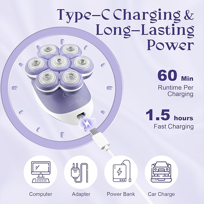 - Portable & Cordless Shaving: Enjoy the ultimate freedom of cordless use with this rechargeable shavers for women. Offering up to 60 minutes of shaving time on a single charge, it's perfect for both travel and everyday use. The lightweight, portable design ensures easy storage and convenience, making it an essential grooming tool for women always on the go.