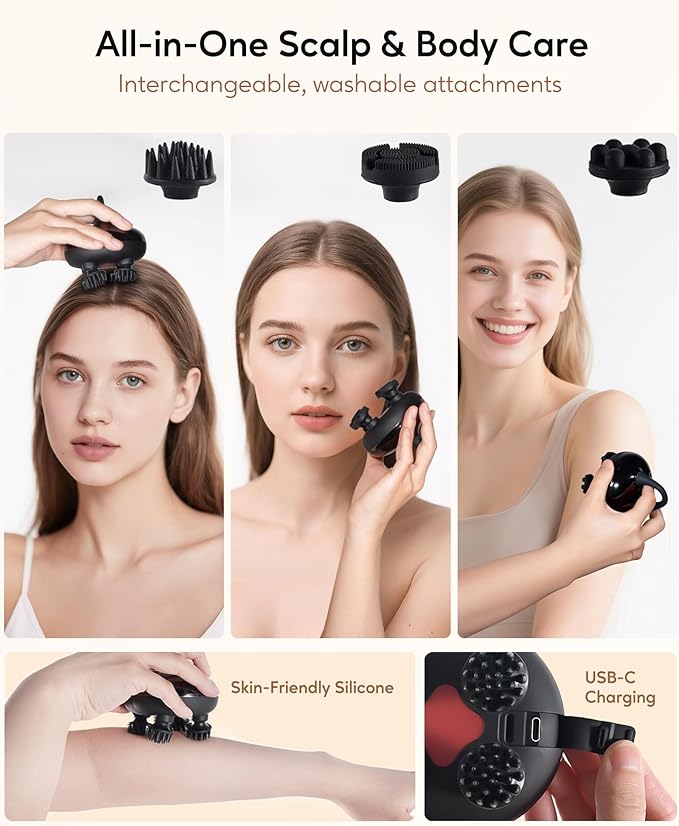 - Scalp Massage & Stress Relief: Features 12 silicone heads with 128 nodes that mimic finger kneading for a relaxing, full-coverage scalp massage; Helps ease tension and refresh your body and mind
