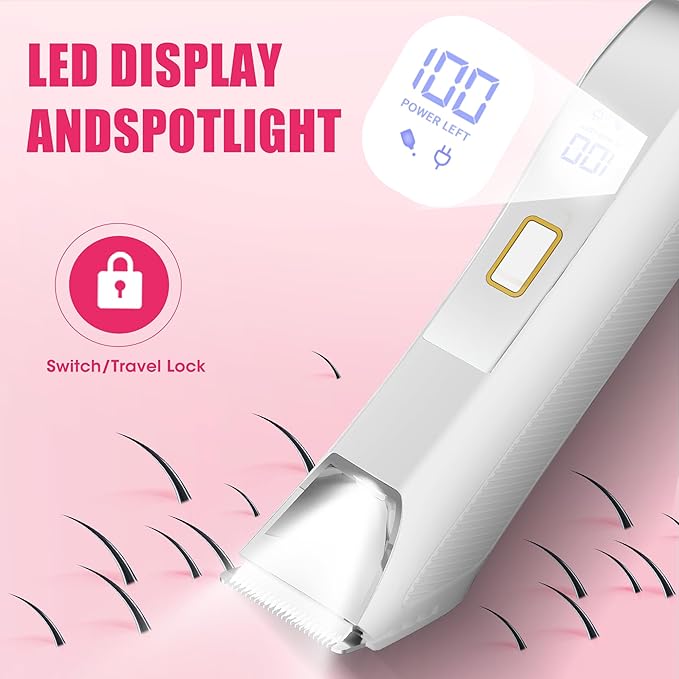 - 【LED Spotlight & Display】:Body hair groomer with LED lighting, can better illuminate multiple body regions, so everyone can feel confident trimming down there, intimate shaving parts are more convenient, clean, and residue-free. The LED display can monitor the power and status of the hair clipper at all times.
