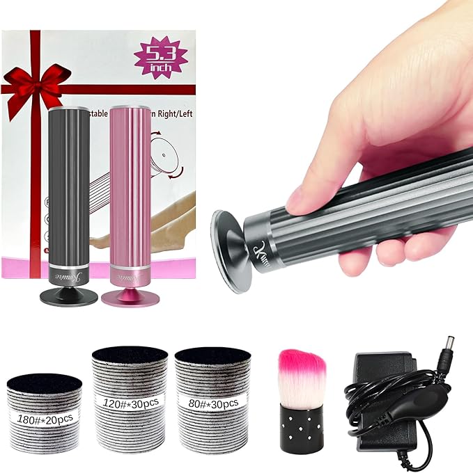 - 【Complete Pedicure Kit – Ready to Use】Everything included: 5.3’’ device, 80 sandpaper discs, cleaning brush, power adapter, and user manual. No batteries needed—just plug in and enjoy salon-quality foot care at home